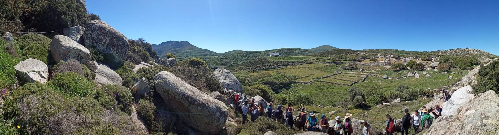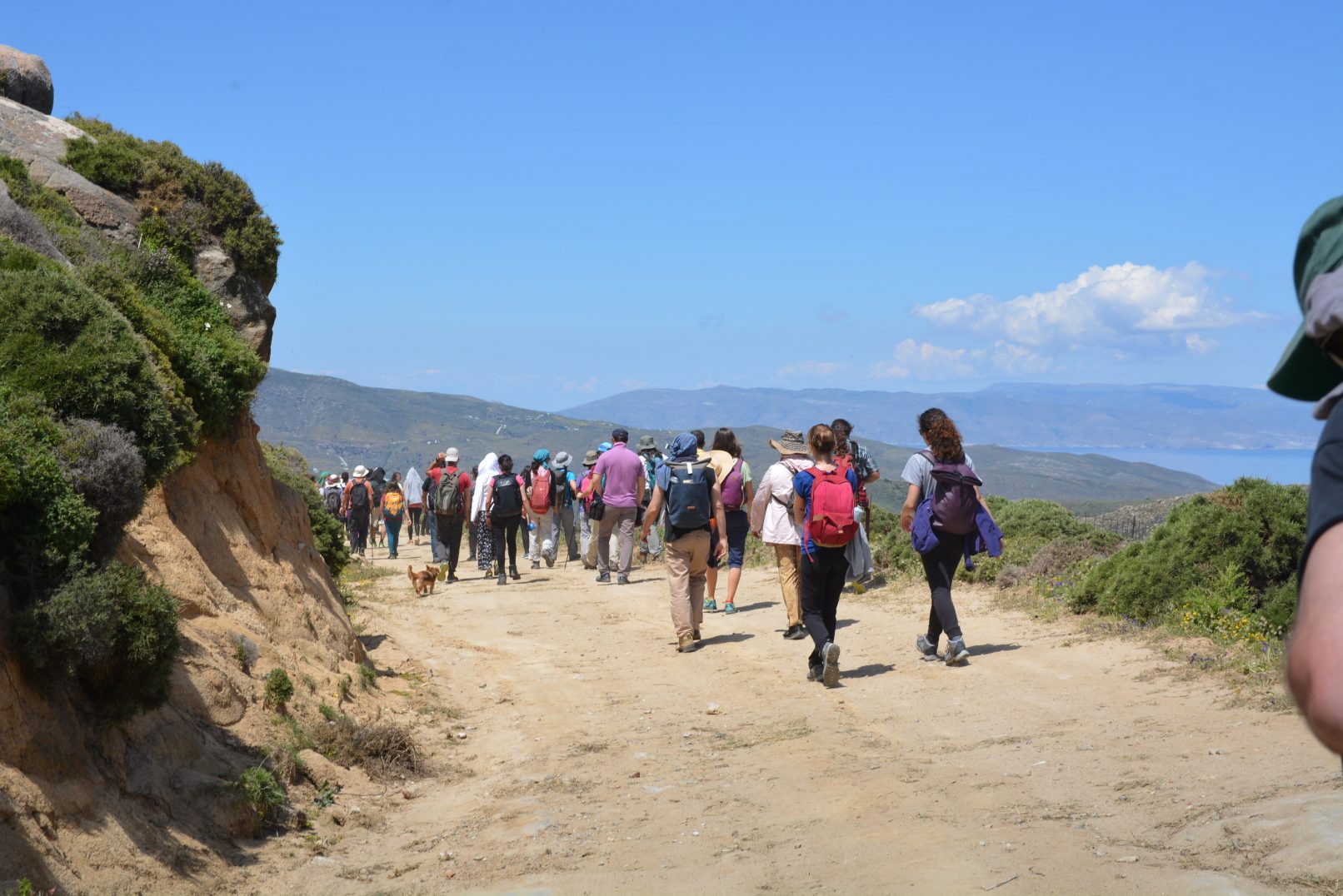 Για πέντε ημέρες, εξήντα συμμετέχοντες, εικαστικοί, χορογράφοι, επιμελητές, περιβαλλοντολόγοι, γεωλόγοι, ερευνητές, περιπατητές, λαογράφοι, μουσικοί, αρχιτέκτονες και θεωρητικοί ήρθαν σε επαφή με το φυσικό και πολιτισμικό τοπίο του νησιού μέσα από οργανωμένες περιηγήσεις και ξεναγήσεις, ανοιχτές στο κοινό, σε τέσσερα ιστορικά μονοπάτια. Σημείο αναφοράς των διαδρομών είναι το Εξώμπουργο, στην καρδιά της Τήνου, και από εκεί, ακολουθώντας τα τέσσερα σημεία του ορίζοντα, το κοινό είτε την ευκαιρία να ανακαλύψει τον πλούτο των υλικών και άυλων εκφάνσεων του μοναδικού τοπίου μέσα από εισηγήσεις, ξεναγήσεις, επισκέψεις, μουσικές παρουσιάσεις που πλαισιώσαν τις περιηγήσεις στα μονοπάτια σε επιλεγμένες τοποθεσίες