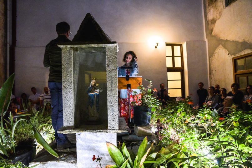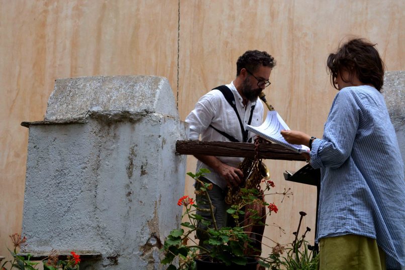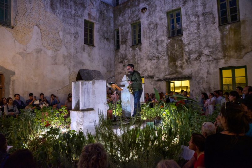 Η μεσόφωνος Αναστασία Κότσαλη και ο σαξοφωνίστας Guido De Flaviis παρουσίασαν αποσπάσματα από τα έργα Φόνισσα και Forget me not του Γιώργου Κουμεντάκη και απο την όπερα Orfeo του Claudio Monteverdi. Mελωδίες απώλειας, μνήμης και απουσίας γυναικών πλημμύρισαν το αίθριο και συνδιαλέκτηκαν με την συναρπαστική ιστορία του σε μια μυσταγωγική παράσταση που διήρκεσε για 40 λεπτά .