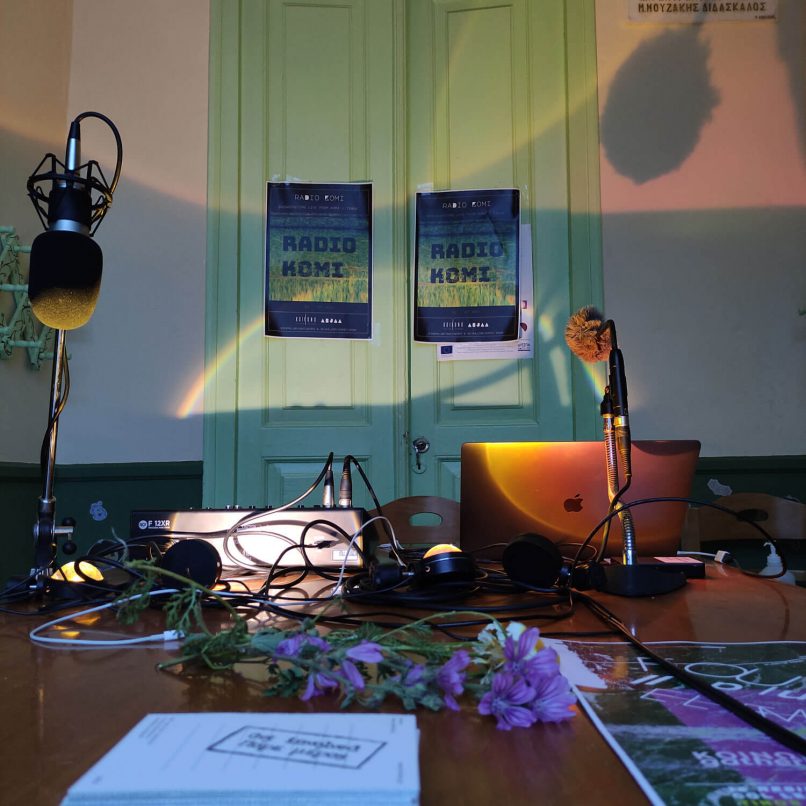 Το Radio Komi εξερεύνησε οικολογίες του παρόντος και του παρελθόντος του χωριού Κώμη στην Τήνο, μέσω ηχητικών καταγραφών, ηχοτοπίων και άλλων μορφών ραδιοφωνικής μετάδοσης. Αντλώντας έμπνευση από την πλούσια αγροτική παραγωγή του χωριού και το ακουστικό περιβάλλον του νησιού, ο ραδιοφωνικός σταθμός συμπεριλάμβανε προηχογραφημένα επεισόδια καθώς και ζωντανές μεταδόσεις που καταγράφηκαν επιτόπου στο χωριό της Κώμης μεταξύ 1 και 7 Μαΐου 2022. Ο σταθμός στεγάστηκε στο Κέντρο Δημιουργικής Απασχόλησης Παιδιών (Κ.Δ.Α.Π.) Κώμης. Όλο το πρόγραμμα μεταδόθηκε μέσω της διαδικτυακής πλατφόρμας του ΚΟΙΝΩΝΩ.