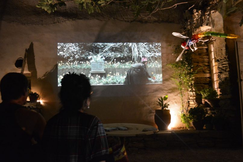 Οι Εικονικοί Κήποι, η τρίτη ενότητα του ΚΟΙΝΩΝΩ 2018, αφορμώμενοι από την αντιπαραβολή μεταξύ άυλης ψηφιακής εικόνας και απτού οργανικού χώρου, παρουσιάσαν ένα διήμερο (26-27/8) προβολών βίντεο στον Κήπο της Συκιάς σε συνεργασία με δύο διεθνή festival ψηφιακών τεχνών.