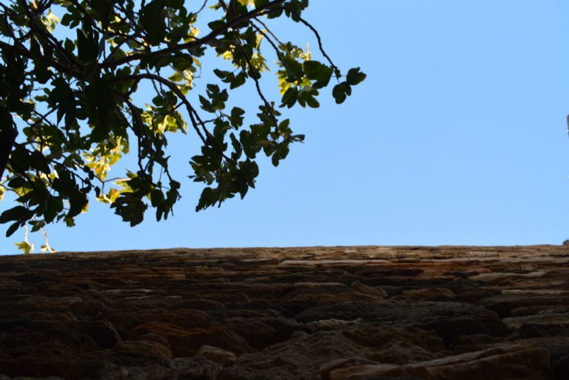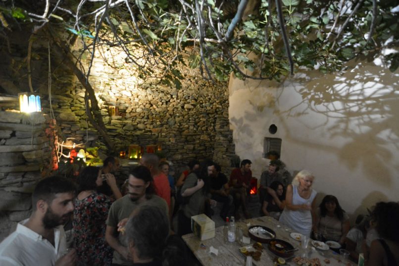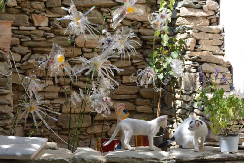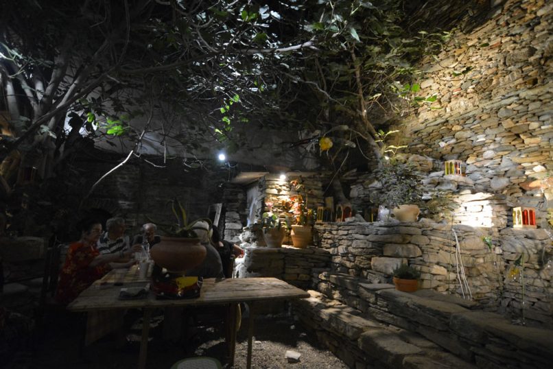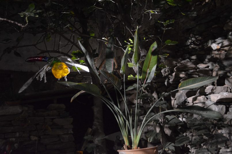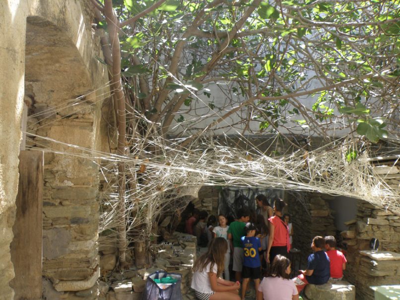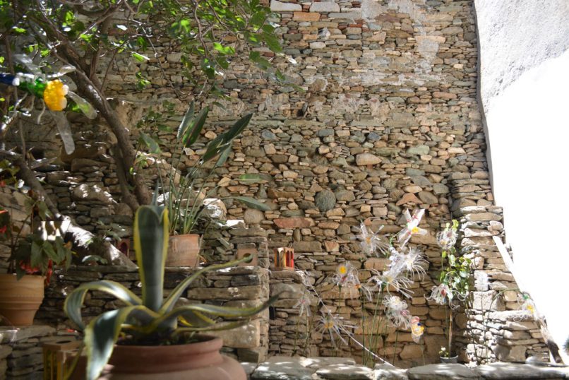 Μέσα από τα χαλάσματα ενός κτηρίου του 18ου αιώνα που λειτουργούσε ως αλευρόμυλος, έχει προκύψει με το πέρασμα του χρόνου ένα ιδιόμορφο, αυτοσχέδιο αίθριο. Η οροφή έχει καταρρεύσει και στο κέντρο του ερειπωμένου πλέον κτίσματος έχουν φυτρώσει τρεις μεγάλοι ορνοί (αγριοσυκιές) που αγκαλιάζουν περιμετρικά το εσωτερικό του κτηρίου, αντικαθιστώντας με τα φυλλώματά τους την αρχική σκεπή. Οι πέτρες της οροφής οργανώνονται έτσι ώστε να συνθέτουν το έδαφος για την καλλιέργεια της νέας βλάστησης.