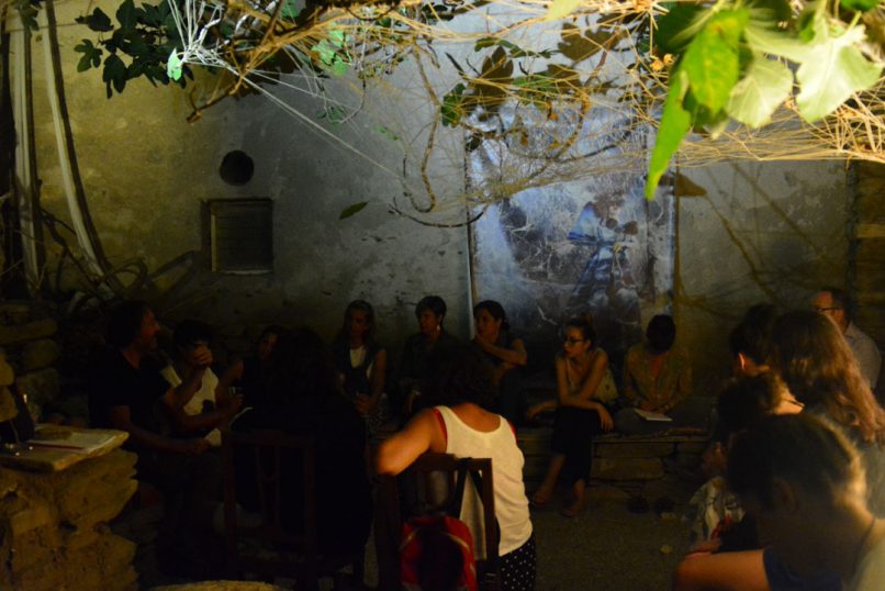Δεδομένης της δυσκολίας της καλλιέργειας και συμβίωσης διαφορετικών φυτών με ένα δέντρο όπως η συκιά, γίνεται το ξεκίνημα για τη μεταμόρφωση ενός εγκαταλελειμμένου και άγονου κτηρίου σε έναν μη στατικό, ζωντανό χώρο. Μέσα από την τοποθέτηση και αναδιαμόρφωση φυσικών αντικειμένων (λουλούδια, πέτρες, δέντρα), καλείσαι να περιεργαστείς τη διάδραση των φυτών, της πέτρας-τόπου, των αλληλοεξαρτώμενων οργανισμών, τον νέο χαρακτήρα αυτού του χώρου, και να τα καθοδηγήσεις ανάλογα με τις συνθήκες. Παρατηρείς, και μέσω αυτής της παρατήρησης οργανώνεις και κάνεις γόνιμο το έδαφος, ώστε αυτά να αναπτυχθούν φυσικά -ομαλά μόνα τους, μεσολαβούσης αυτής της ανθρώπινης δημιουργικής δραστηριότητας, της κηπευτικής.